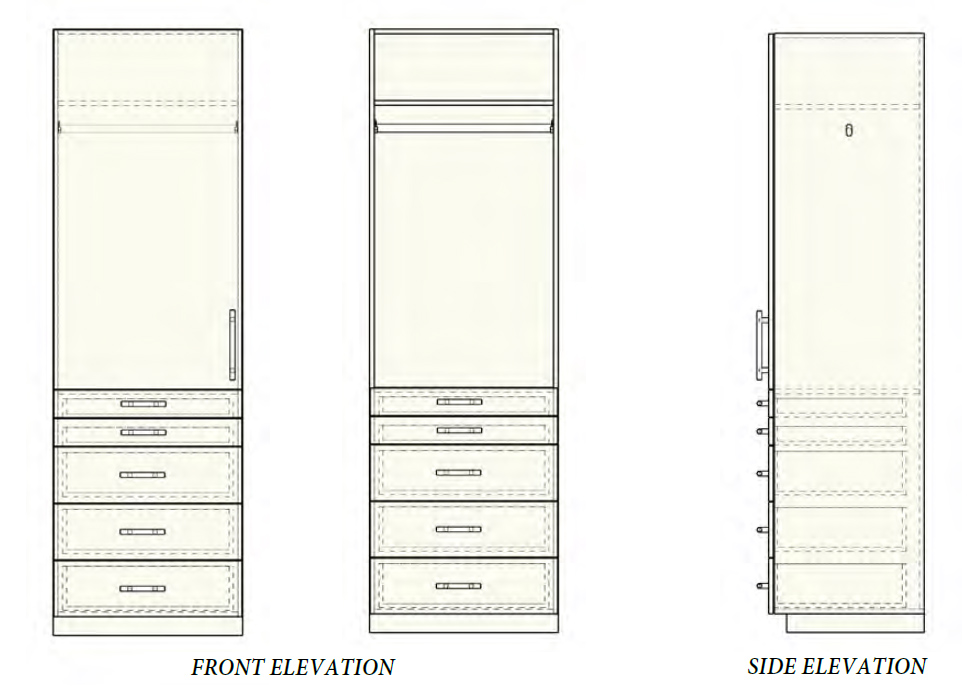5 – Drawers and Single Hanging with shelf Tall