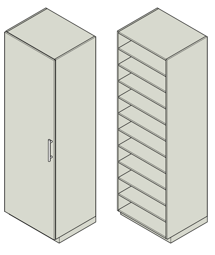 10 – Shoes Adj. Shelves Tall Cabinets***Open and with doors (15″ – 24″ Deep Options)SIZE CONSIDERATIONS:Height = Up to 96″HWidth = 18″W to 48″W ( Center Partition after 36″s)Depth = 12″D to 18″DToekick = 3.5″