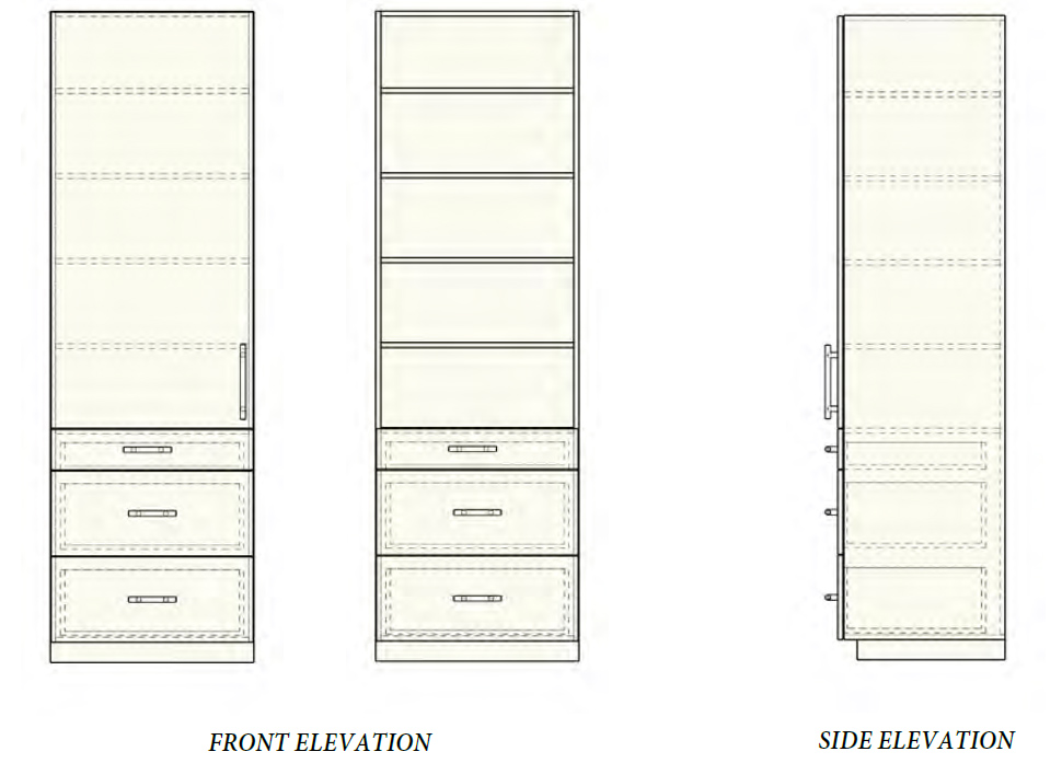Adjustable Shelves with Three Drawers Tall Cabinet***Open and with doors (15″ – 24″ Deep Only)SIZE CONSIDERATIONS::Height = Up to 96″HWidth = 18″W to 45″WDepth = 18″D to 24″DToekick = 3.5″